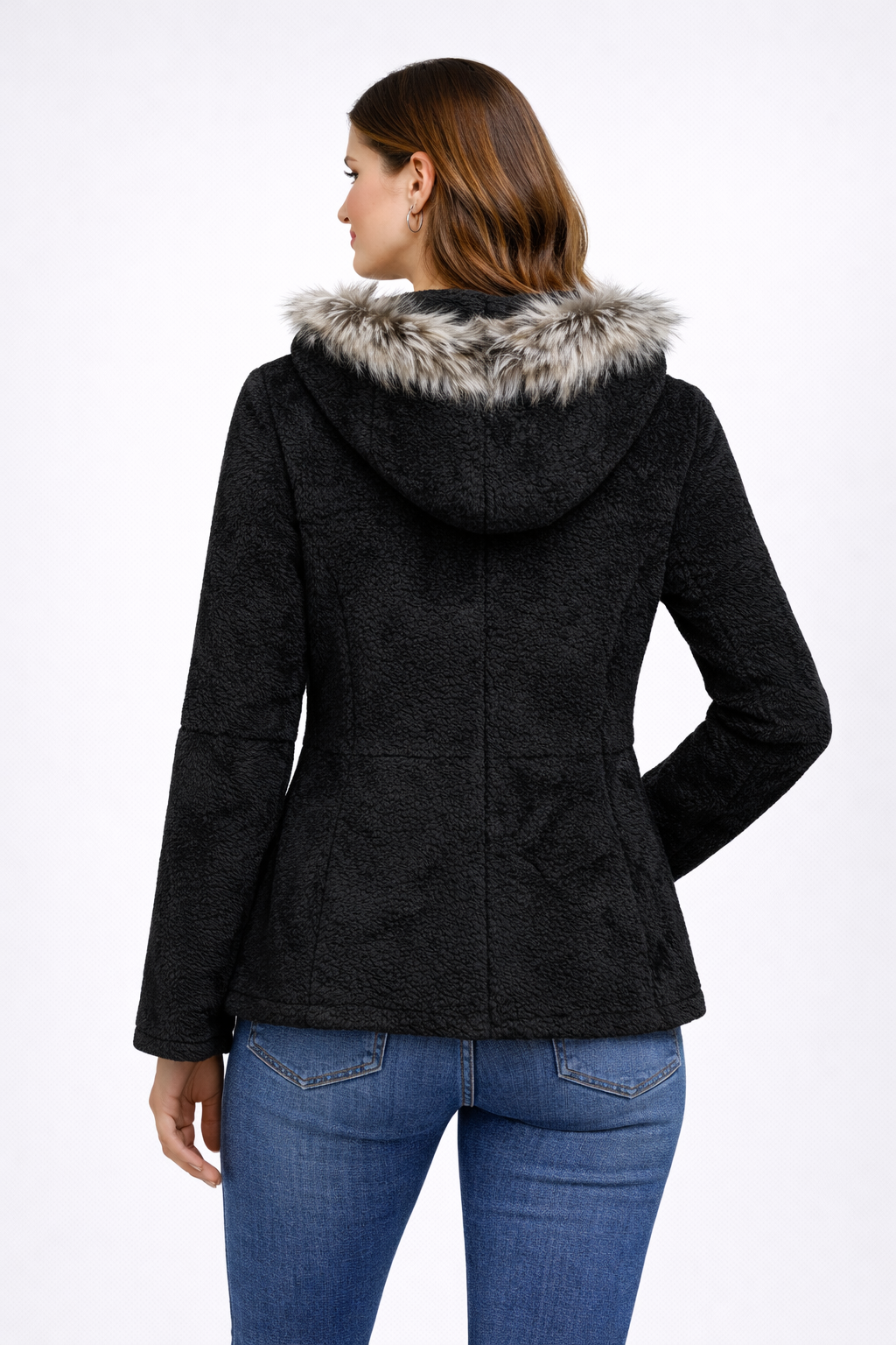 Black Full Fur hooded Women Leather Jacket