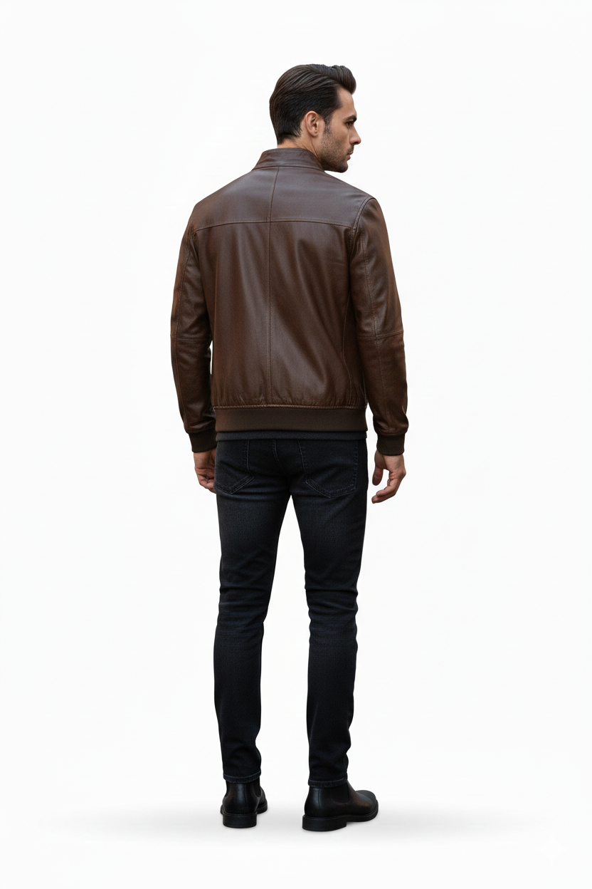 BROWN GENIUNE LEATHER MEN'S JACKET