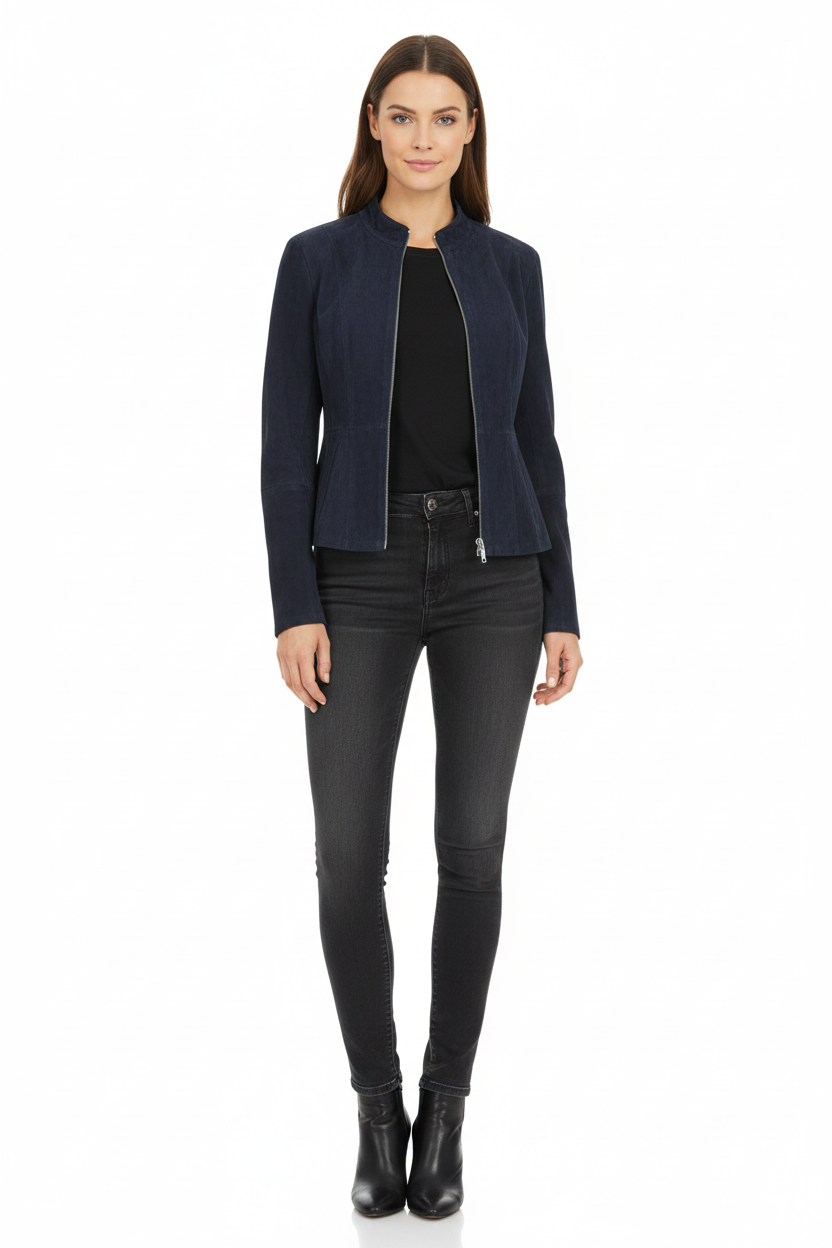 Navy blue suede genuine leather women's jacket is a special design that combines elegance and functionality in winter months. Produced using first-class genuine leather, this model can be preferred with both suede and smooth leather sides, thanks to its two-sided use feature. In this way, it offers the opportunity to create two different styles with a single jacket. Its inner structure suitable for winter use keeps you warm in cold weather and provides comfort all day long. While the suede surface offers a soft and elegant appearance, the smooth leather side creates a more classic and strong style. The noble and modern stance of the navy blue color provides a wide range of uses, from daily combinations to stylish city styles. It promises long-lasting use thanks to its careful sewing details, quality workmanship and durable structure. It is an ideal winter leather jacket option for women looking for a combination of elegance, quality and versatile design.